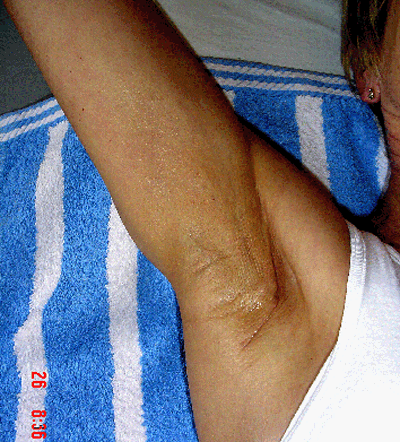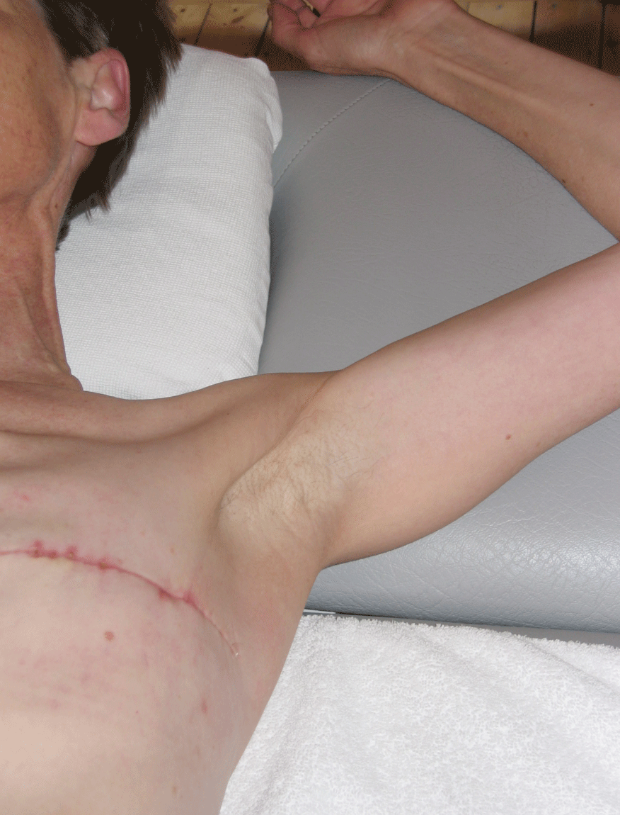 the arm pit and upper arm. Physical therapy of axillary web